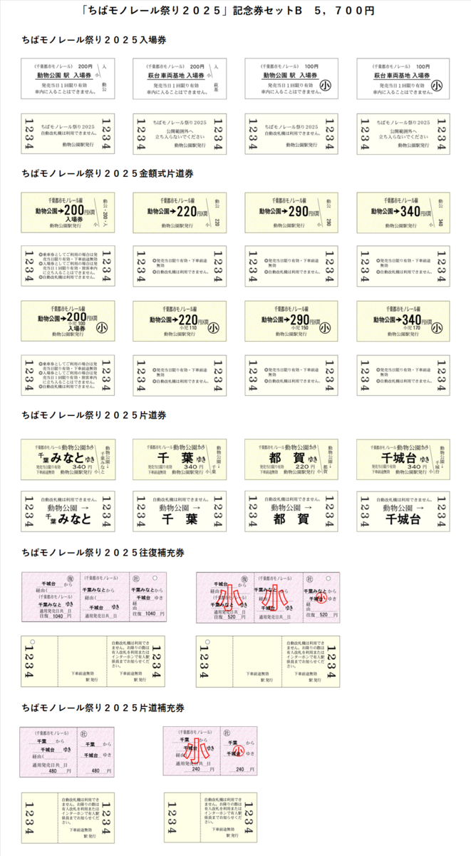 セットの組み合わせは、ちばモノレール祭り2025片道補充券